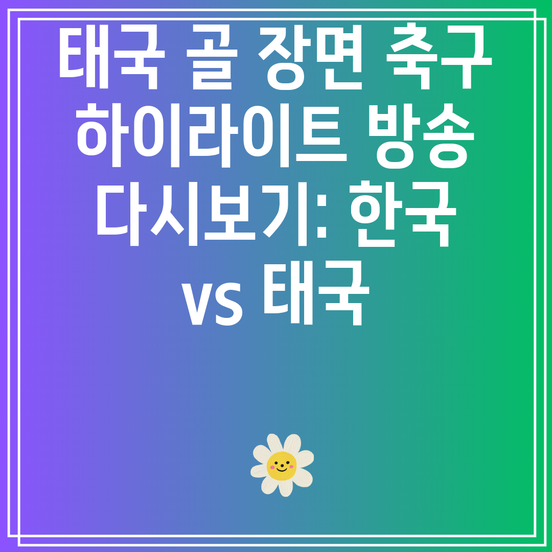 이번 한국과 태국의 골 장면 축구 하이라이트 방송은 두 팀 모두의 멋진 경기를 보여주었습니다. 한국은 뛰어난 기술과 단결력으로 우승했지만, 태국도 끈질기게 버텨 훌륭한 경기를 펼쳤습니다. 이 경기는 스포츠맨십과 우수성의 진정한 본보기였으며, 모든 축구 팬들에게 즐거움이었습니다.
